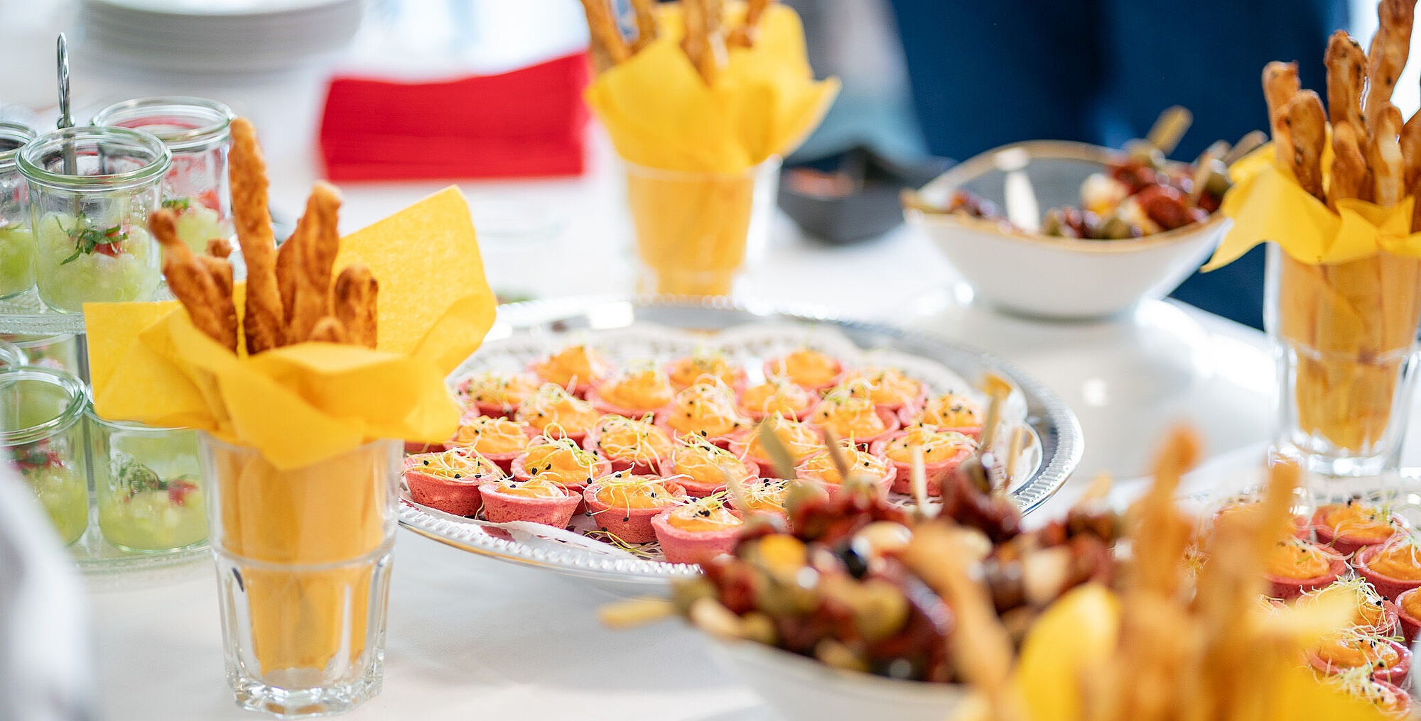 Zusätzlich bieten wir ein vielfältiges Salatbuffet, Sandwiches und diverses Gebäck an.
